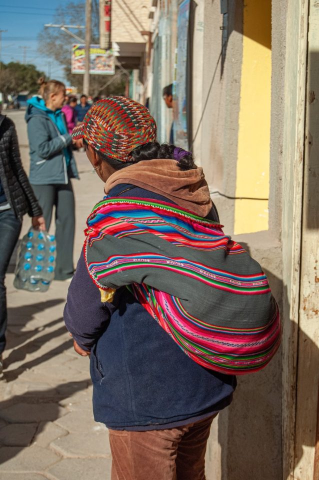 Cada bote tiene su carácter. Algunos muestran el desgaste de años de trabajo, otros están mejor pintados, listos para el siguiente grupo de turistas rumbo a las islas. En uno, una familia local cruza el lago con naturalidad absoluta, como si el frío y la altura no existieran.