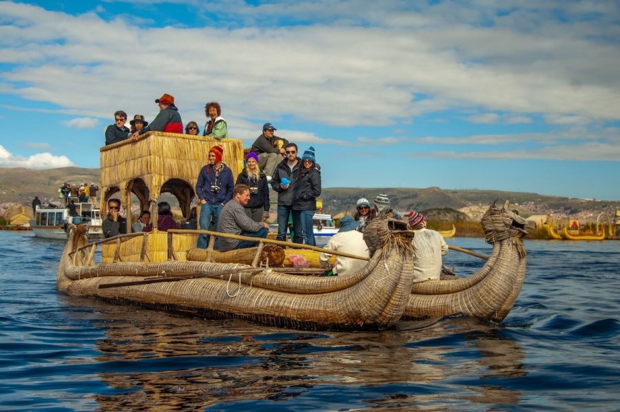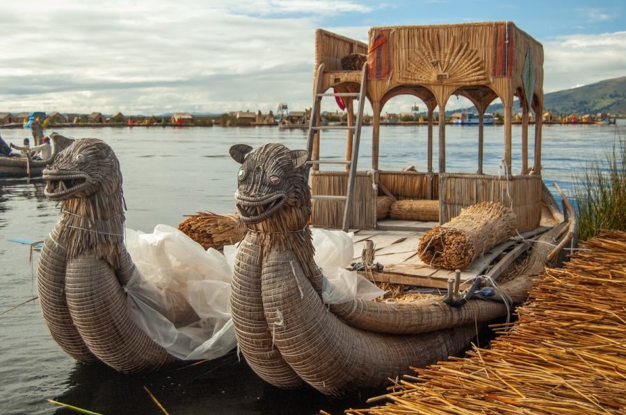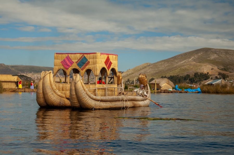 Estas embarcaciones están construidas íntegramente con totora, una planta acuática que crece en abundancia en el lago. No hay metal, no hay motores ruidosos: solo capas de tallos secos, amarrados con precisión, renovados cada cierto tiempo porque el agua, poco a poco, los devuelve a su origen.