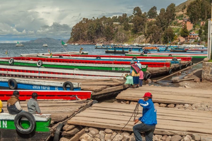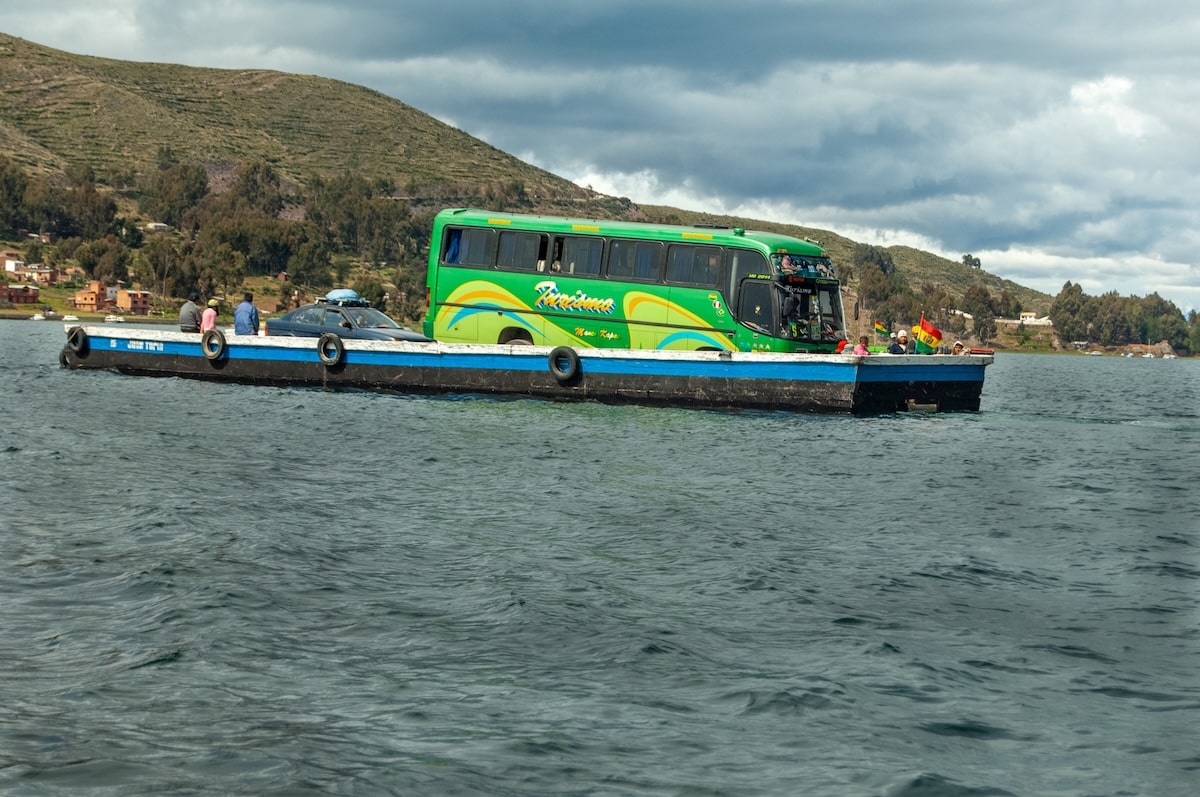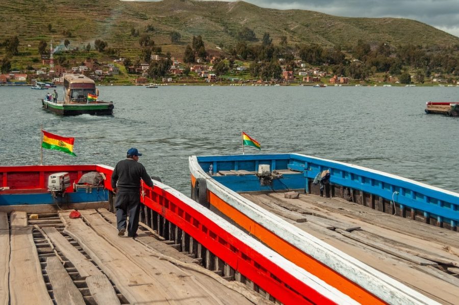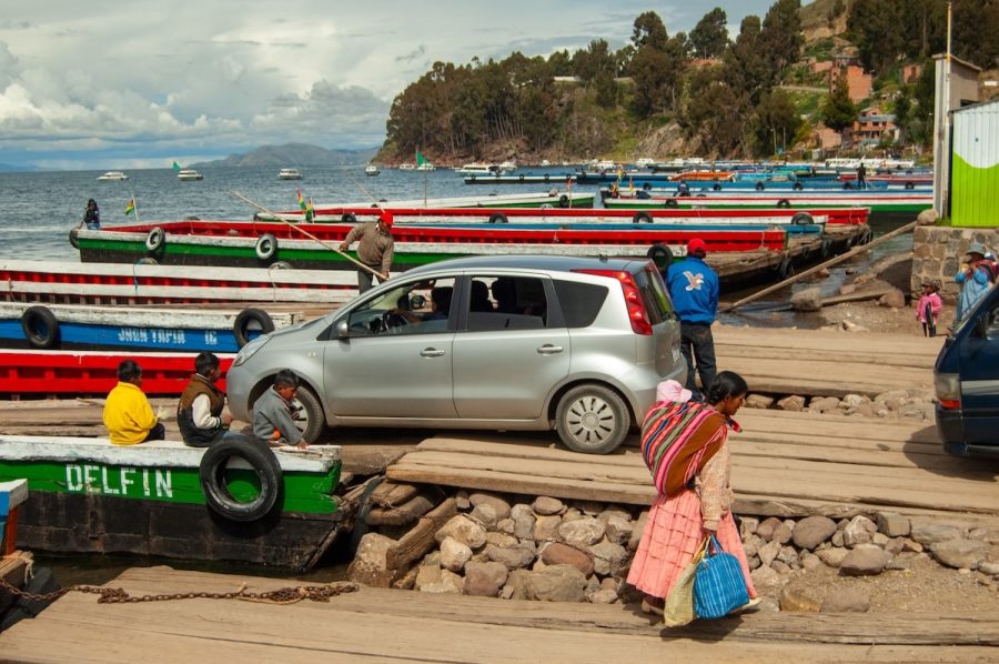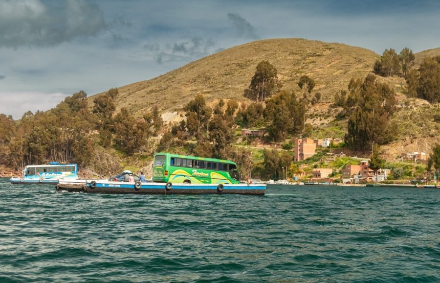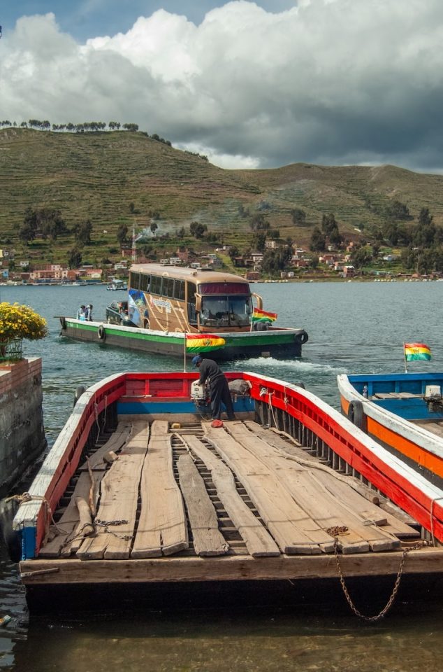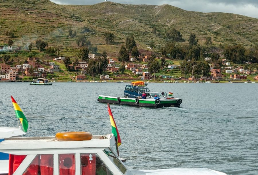 Venía de Copacabana, con la sensación de estar avanzando por un territorio que no se parece a nada más. El cielo cambia rápido, el viento corta, el agua parece infinita. Y de pronto, el bus se detiene. No hay puente. Hay lanchas, plataformas flotantes y una coreografía perfectamente ensayada entre personas, motores y cuerdas.