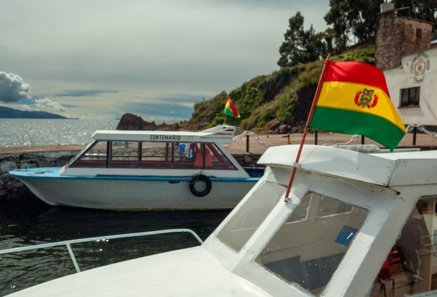 Desde la orilla, las banderas bolivianas flamean con fuerza. El agua se mueve con un carácter que impone respeto. No hay dramatismo, pero sí una tensión silenciosa: el viento, el peso, el equilibrio. Es uno de esos lugares donde la infraestructura es mínima y la confianza en la experiencia humana lo es todo.